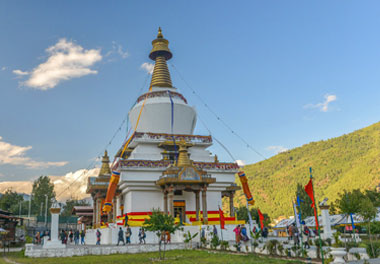 Fifty or sixty pilgrims dressed in traditional Bhutanese clothes were going around the stupa chanting the age-old Buddhist mantra, “Aum mani padme hum” (“I offer my respects to the jewel within the lotus.”)