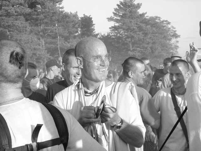 Over the next few days we smothered them in love and im- mersed them in an ocean of nectar: Krsna’s Village of Peace at the Polish Woodstock Festival. If they had any intention of taking drugs there was no time—not even a second! And why should they want to? We had brought them into the wonderful world of Krsna con- sciousness, where all walking is dancing, all talking is singing and there’s a festival every day.