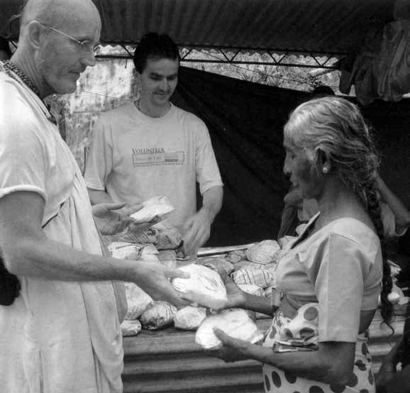 As he accelerated, I thought, “Tomorrow will bring relief, for we’ll begin distributing prasadam.”