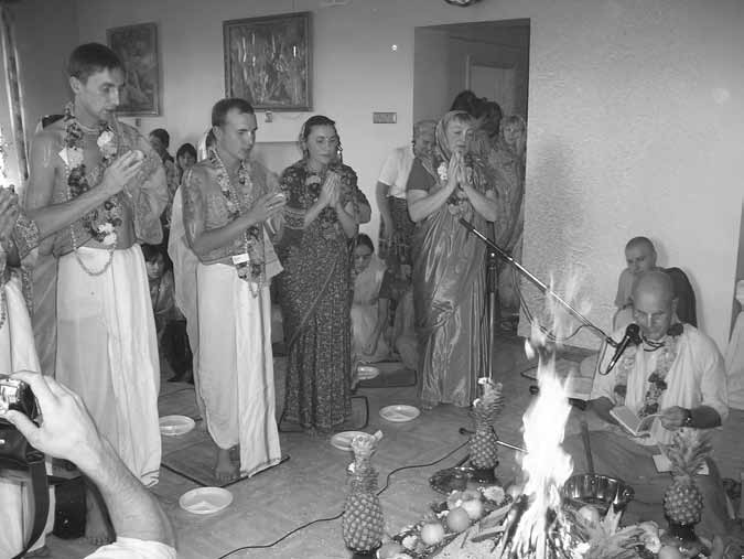 But the temple president had other plans. “Maharaja,” he said, “there’s one thing I’d like to ask you. You have a number of aspiring disciples here whom I would like to recommend for initiation. Can you hold a fire sacrifice and initiate them tomorrow?”
