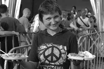 “Yes,” I said. “You see over there? There’s a whole village being erected called Krsna’s Village of Peace. For the next week you can meet devotees of Krsna and learn more about chanting Hare Krsna.”