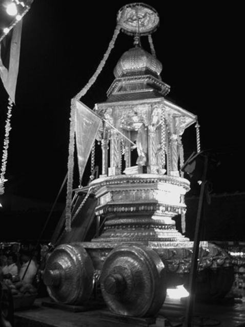 I was tired from my long journey. I sat back and closed my eyes, trying to recall my first visit to Udupi. I remembered ar-riving there after many days on a train, going straight to the temple, walking inside, and quietly paying obeisances. The Deity stood on the altar with a staff for herding cows in one hand and a ball of butter in the other.